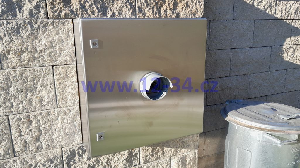 Zavřený rozvaděč s přepínačem sítí na dveřích je na obrázku 1 a výzbroj rozvaděče je na obrázku 2.
