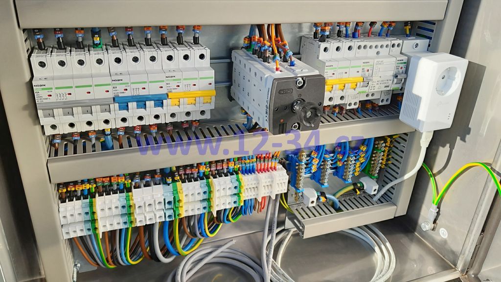 Rozvaděč s přepínačem sítí, kterým se napájení domu přepíná mezi sítí sluneční elektrárny a sítí distribuční soustavy (dále jen DS), je zařazen hned za elektroměrovým rozvaděčem. Rozvaděč je vybaven automatickým odpojením DS v případě jejího výpadku.